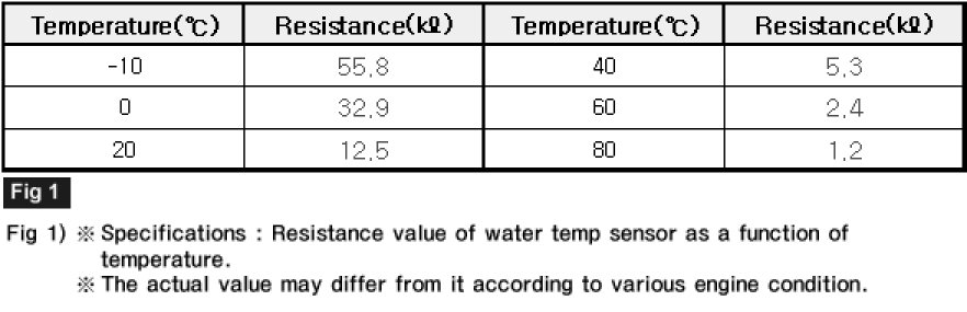 1) Substitute with a known-good Water temp. sensor and check for proper operation. If the problem is corrected, replace Water temp. sensor and then go to "Verification of Vehicle Repair" procedure.