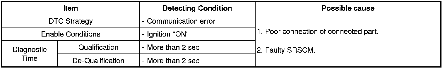 The SRSCM sets DTC B1449 if there is any error in communication between Weight Classification System ECU and SRSCM.