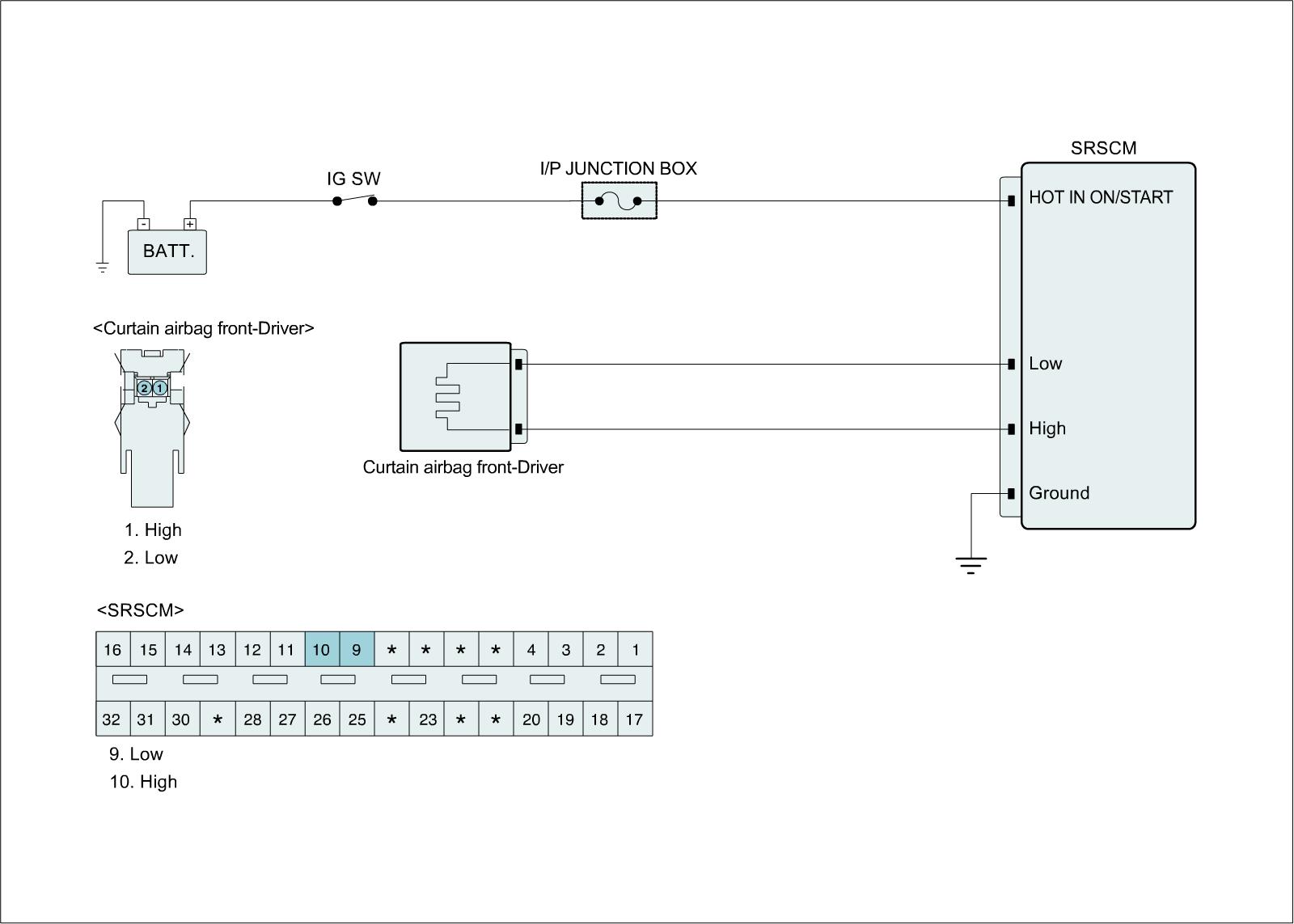B1476 Inflatable curtain airbag front-Driver resistance circuit short to Battery - General Information