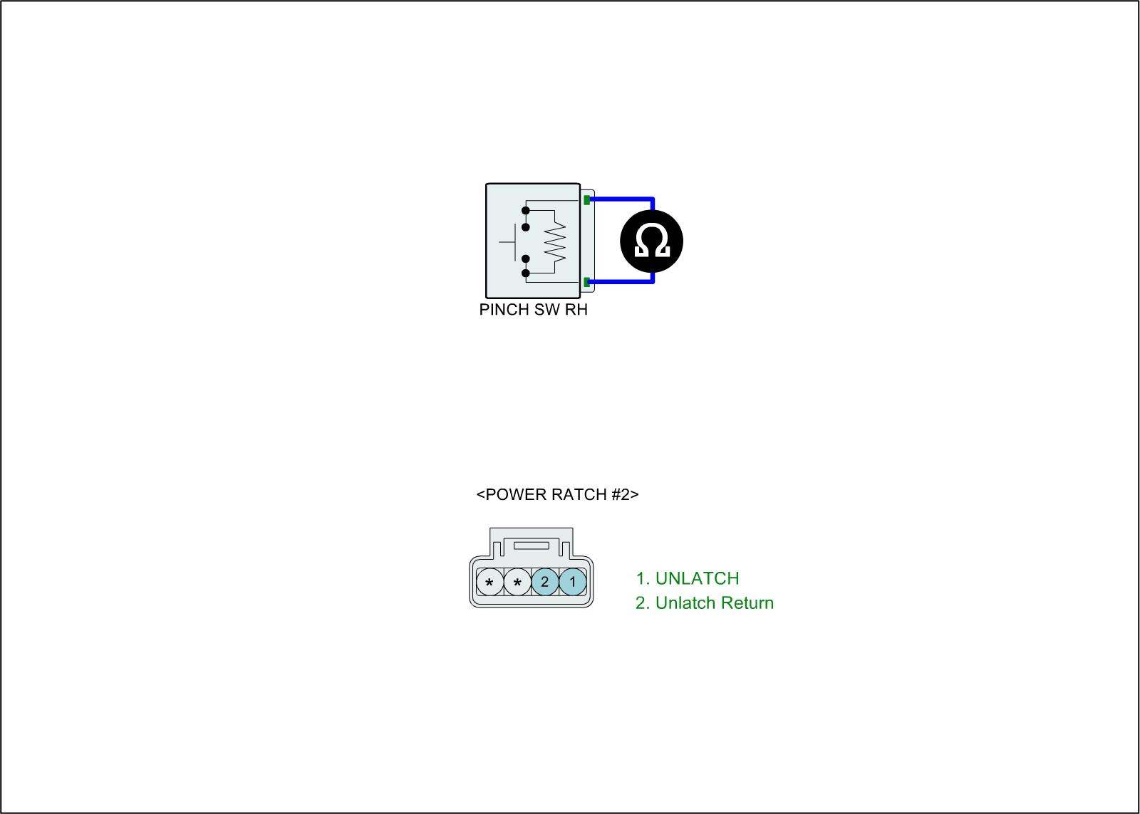 3. Measure the voltage between power terminal for UNLATCH MOTOR of PTG module and chassis ground.