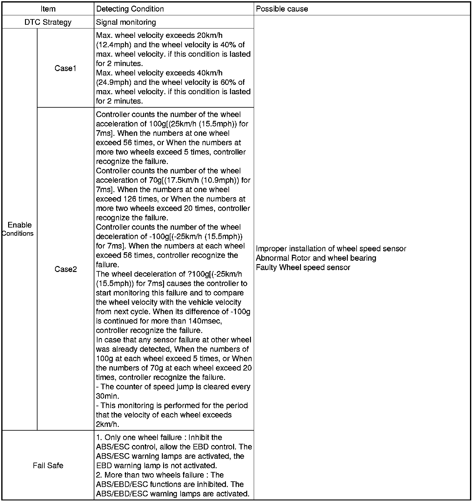 This code is set if an abnormal speed change ratio is detected while the vehicle speed is more than 2 km/h.