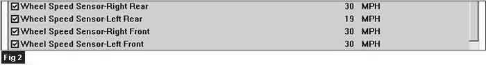 C1207 Wheel speed sensor rear-LH range / performance / intermittent - Monitor Scantool Data