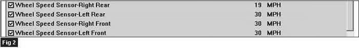 C1210 Wheel speed sensor rear-RH range / performance / intermittent - Monitor Scantool Data
