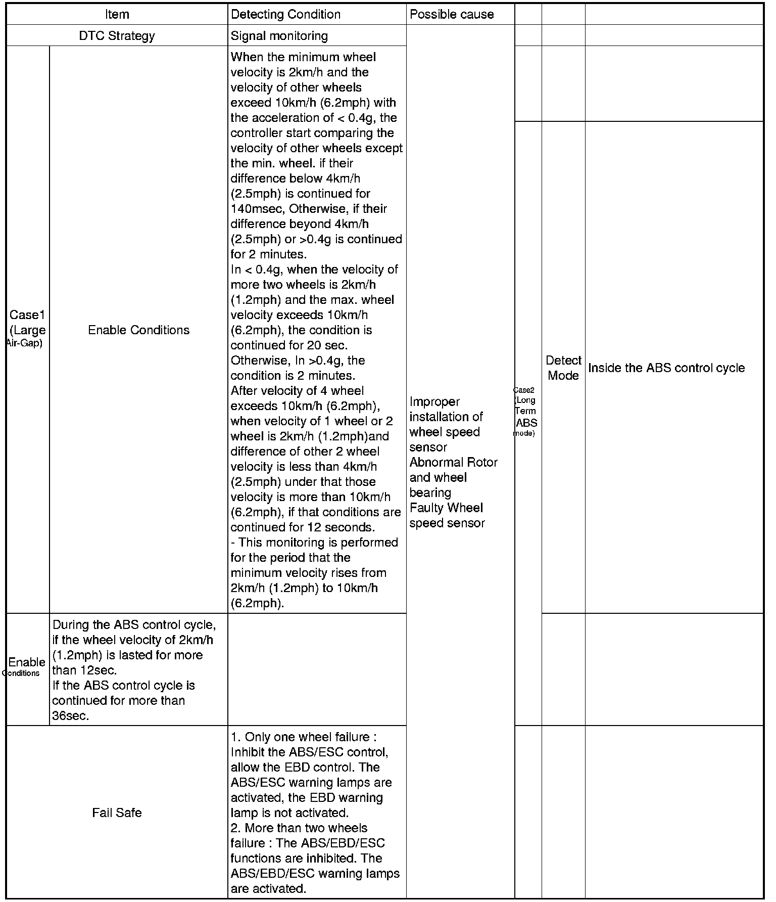 The ABS ECU monitors the wheel speed sensor signal continuously.