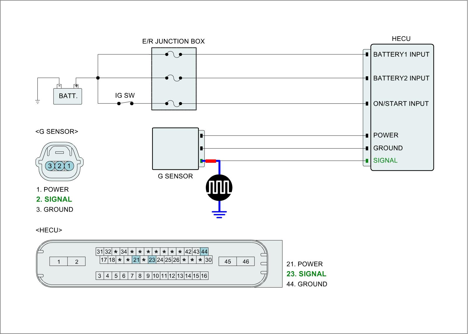 1) Fault is intermittent caused by poor connection in G sensor harness and/or HECU's connector.
