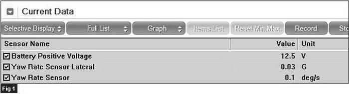 C1283 Yaw rate and lateral G sensor - signal - Monitor Scantool data
