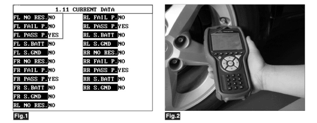 4. Monitor the parameters of 'Front Left' LFI on the 'TPMS exciter' or scantool.