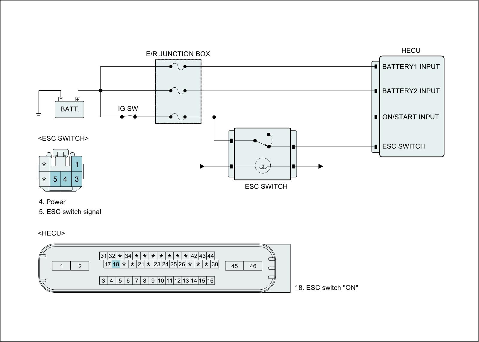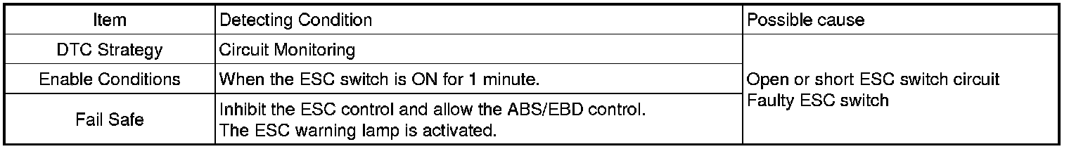 When the ESC switch failure is set, Warning lamps won't illuminate and HECU allow the ABS/EBD/ESC control.