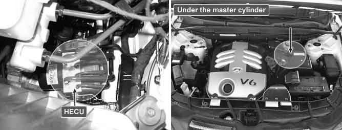 The HECU consists of an ECU (Electronic Control Unit) and a HCU (Hydraulic Control Unit).