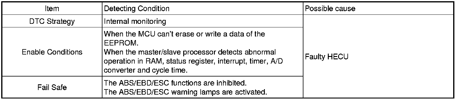 The ECU sets this code when the EEPROM data read by the master processor is different than prior data written, or when the master/slave processor detects abnormal operation in RAM, Status Register, Interrupt, Timer, A/D converter or cycle time.