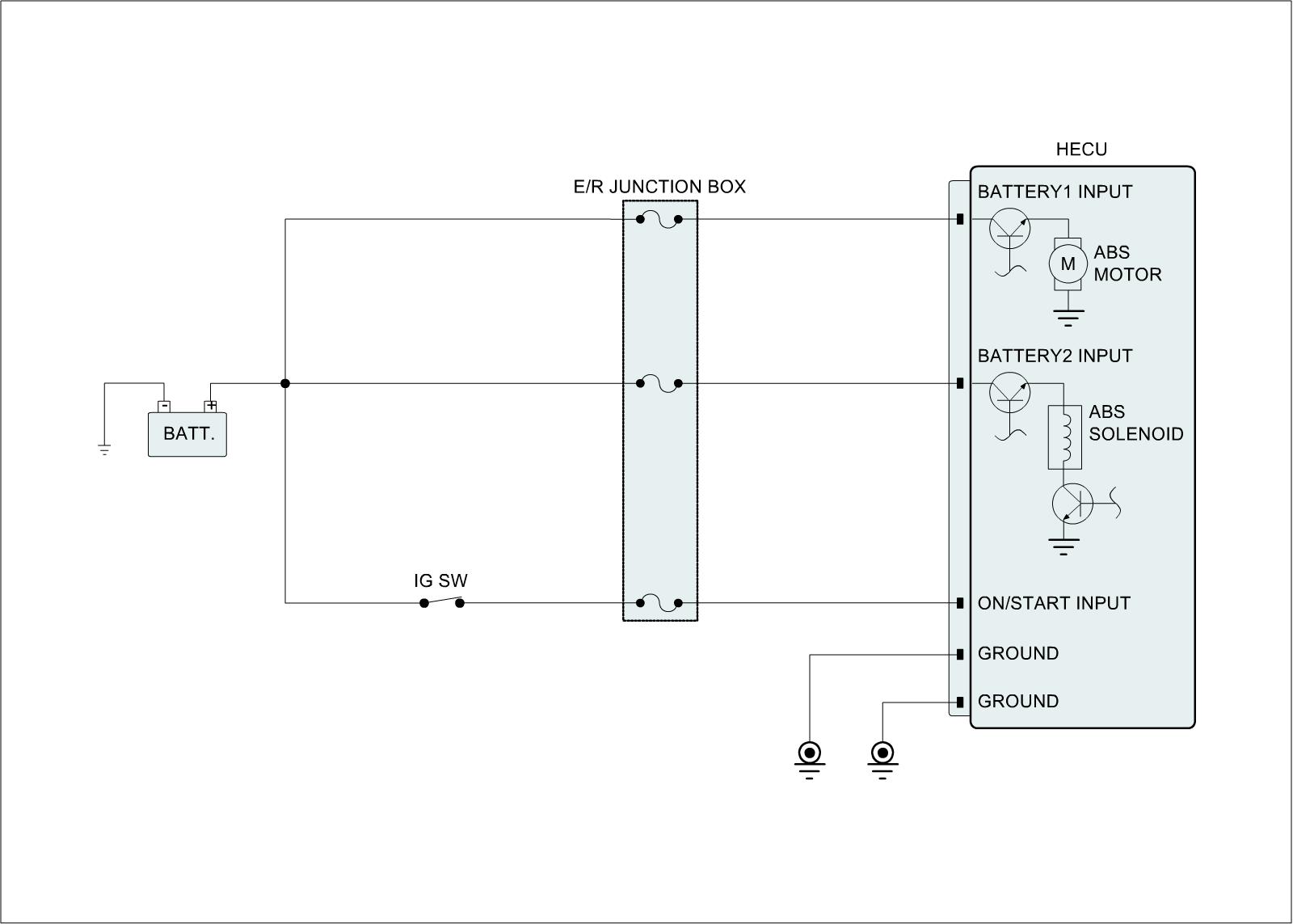 The function of HCU is to increase, decrease or maintain the hydraulic pressure supplied to a wheel cylinder by operating return pump according to HECU control signal while ABS control is active.