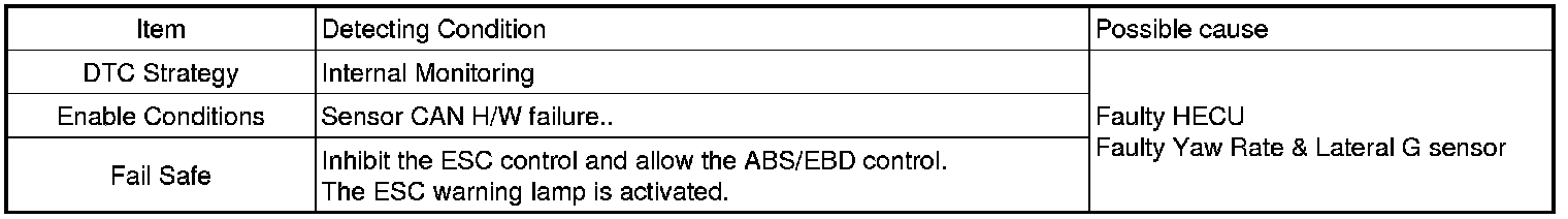 The HECU checks the sensor CAN H/W for normal ESC control, and sets this code if a sensor CAN H/W malfunction is detected.