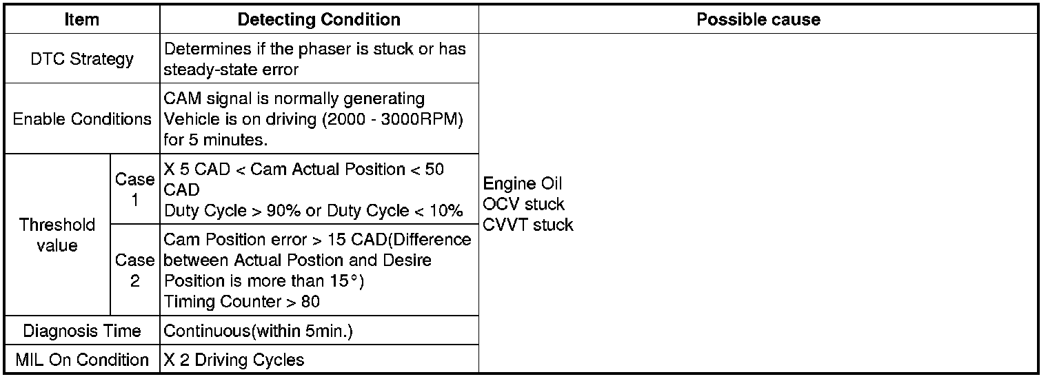 If the CAM phaser does not move although PCM commands OCV duty cycle PCM determines that a fault exists and a DTC is stored.
