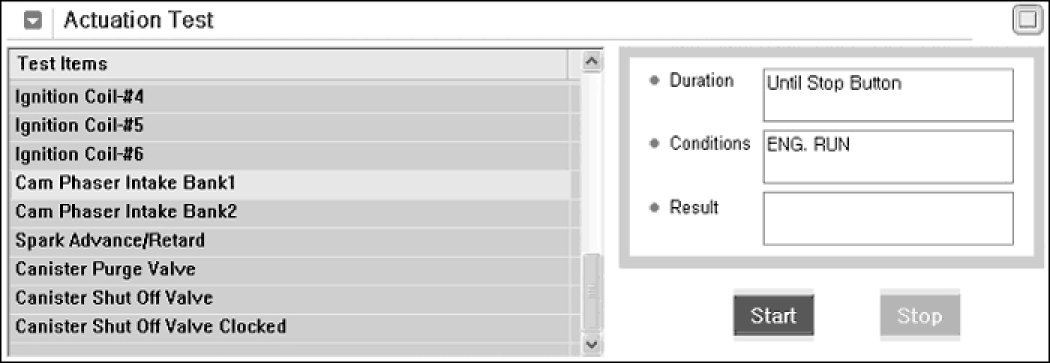2. Select "CAM PHASER INTAKE BANK 1" on the Actuation Test