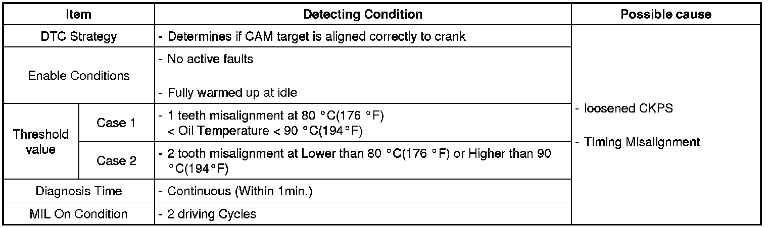 If the timing is misaligned PCM determines that a fault exists and a DTC is stored.