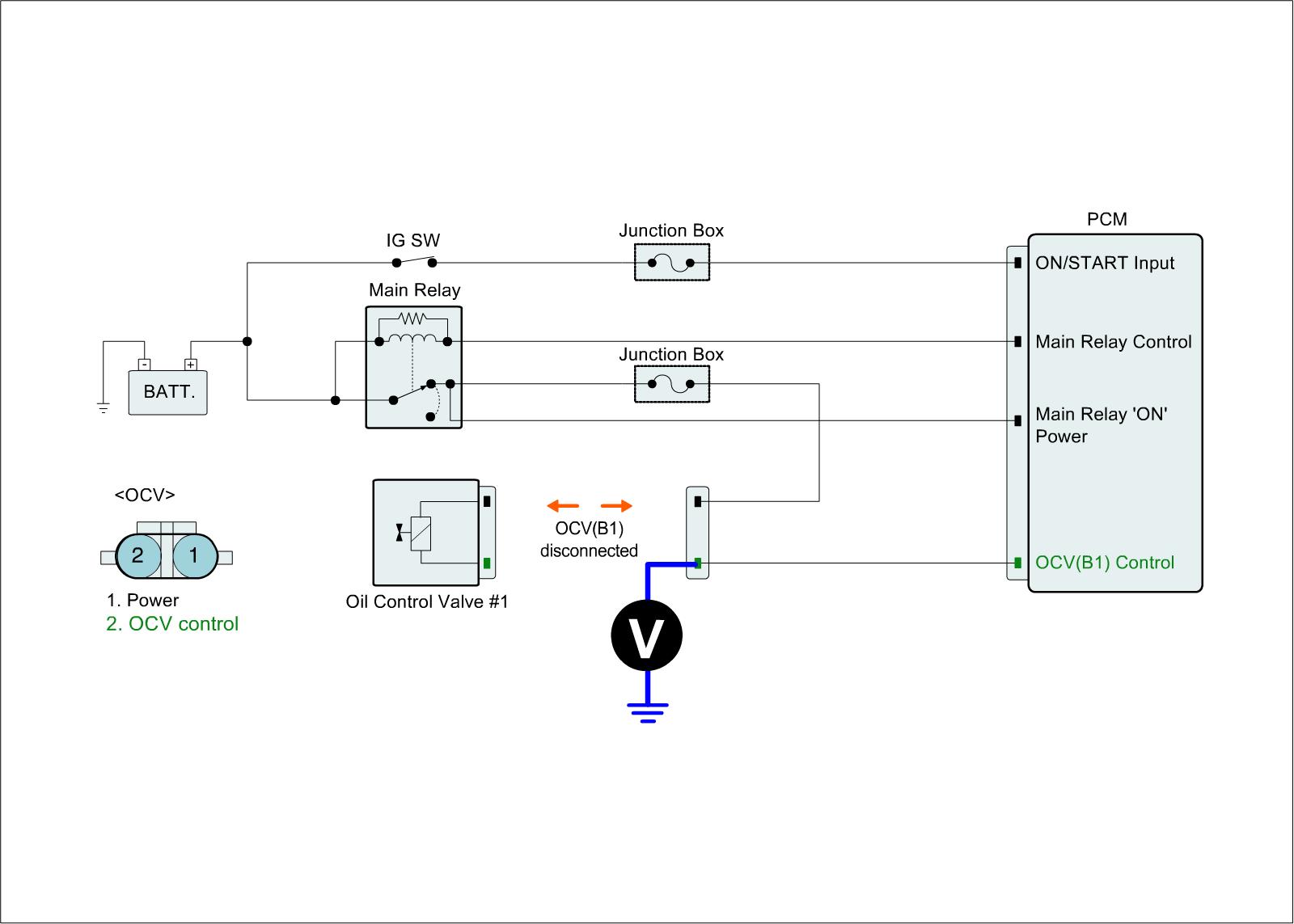 3. Measure voltage between power terminal of OCV harness connector and chassis ground.
