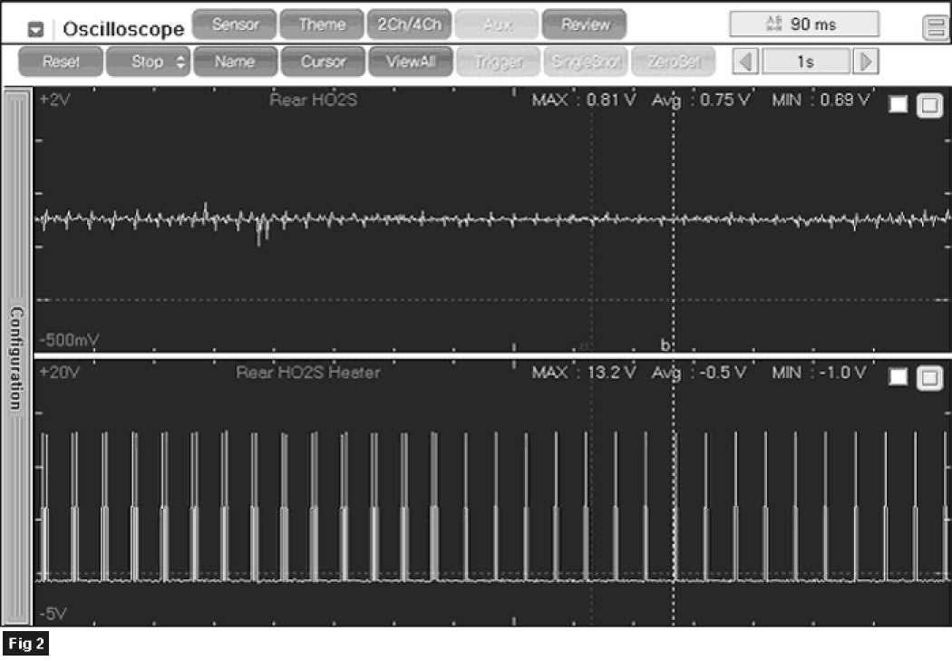 Fig 2) The signal waveforms of rear HO2S (the upper) and heater (the lower) at idle