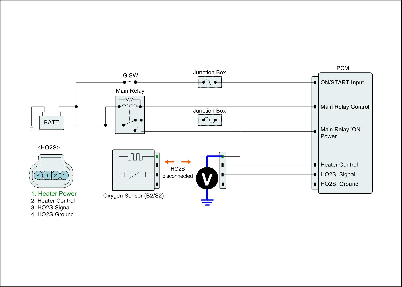 1. IG "OFF" & Disconnect HO2S (B2/S2) connector.
