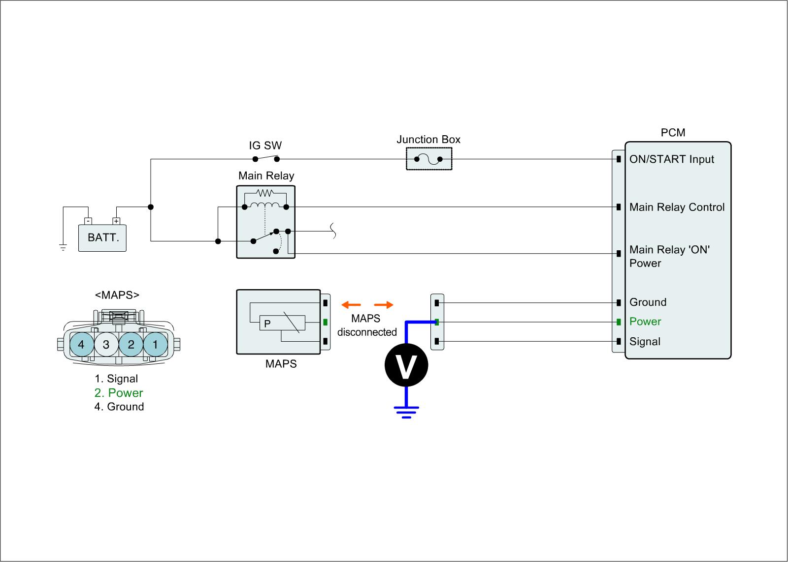 4. Measure the voltage between power terminal of MAPS harness connector and ground.
