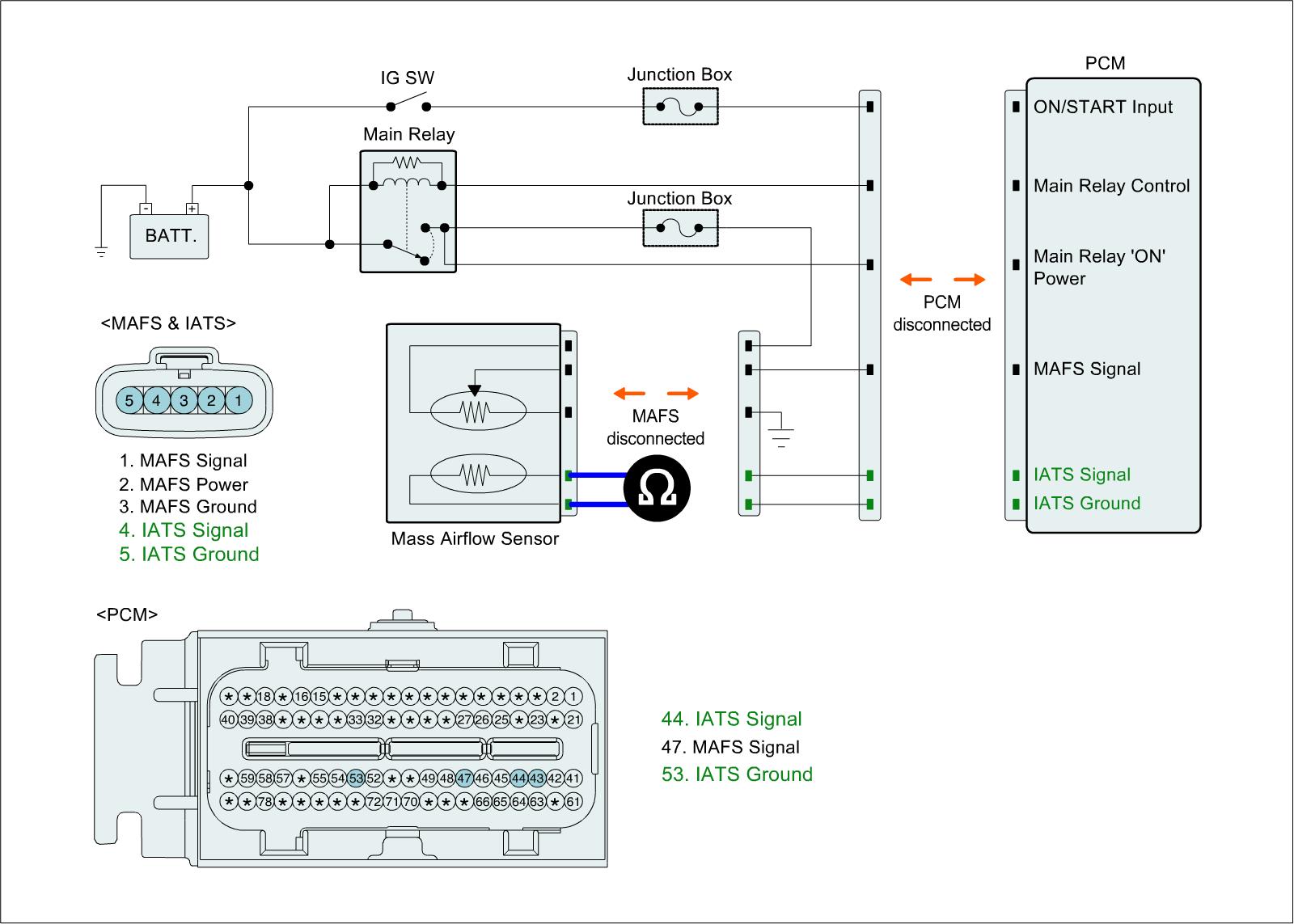 2. Measure resistance between signal and ground terminals of IATS connector after checking out the temperature of IATS with scantool