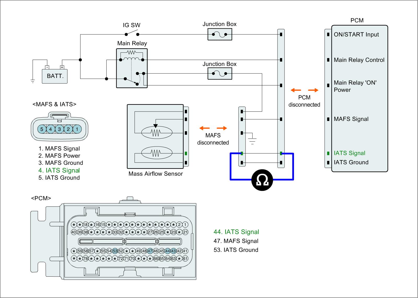 1. IG "OFF" and disconnect IATS connector and PCM connector.