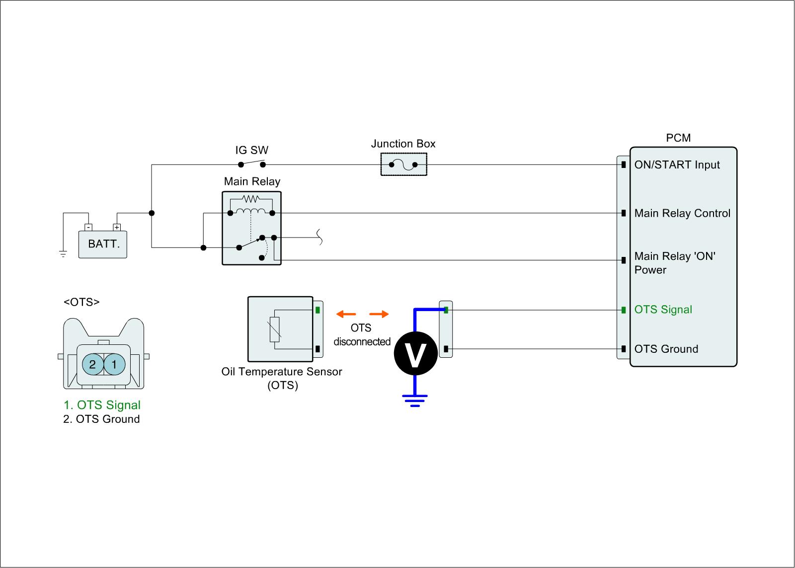 4. Measure voltage between harness signal terminal of OTS and chassis ground.