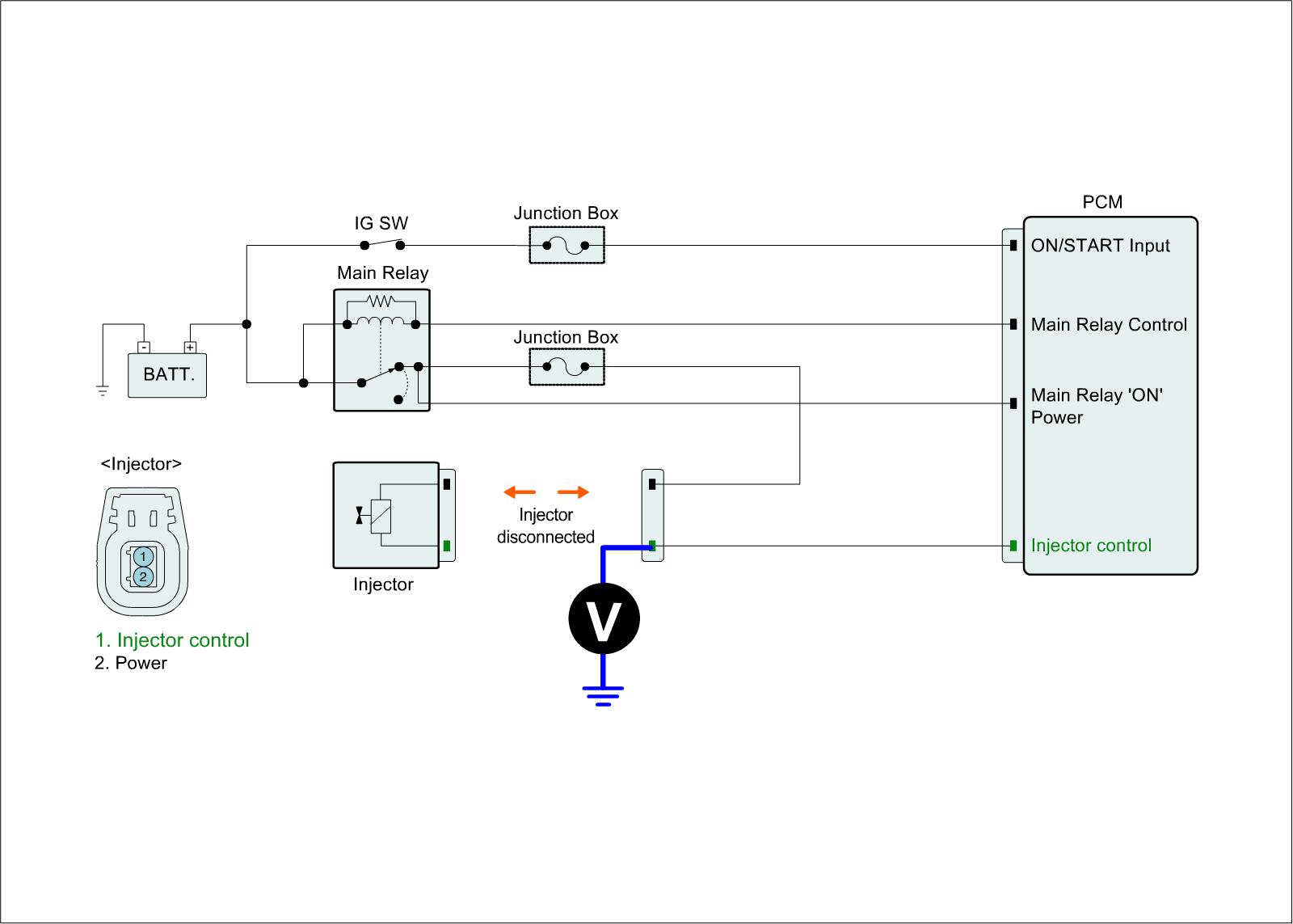 1. IG "OFF" and disconnect injector connector and PCM connector.