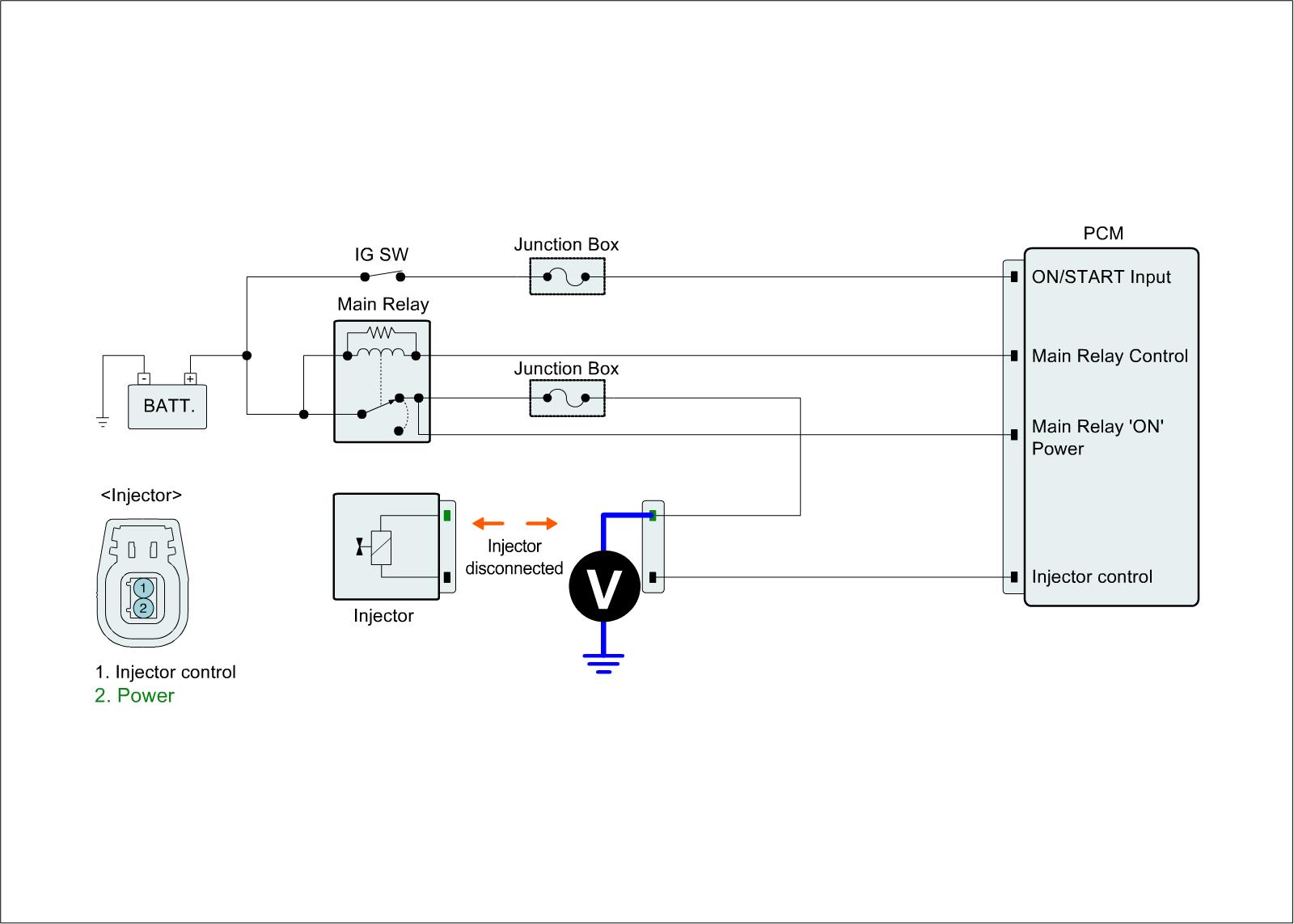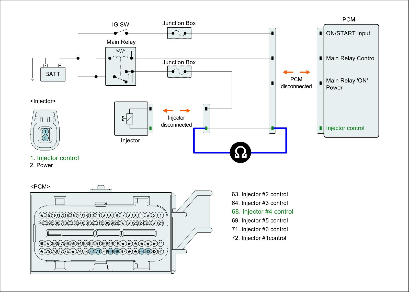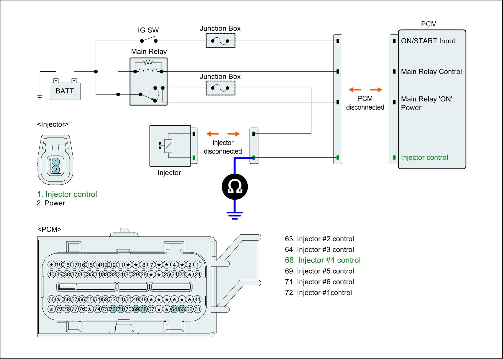 1. IG "OFF" and disconnect injector connector and PCM connector.