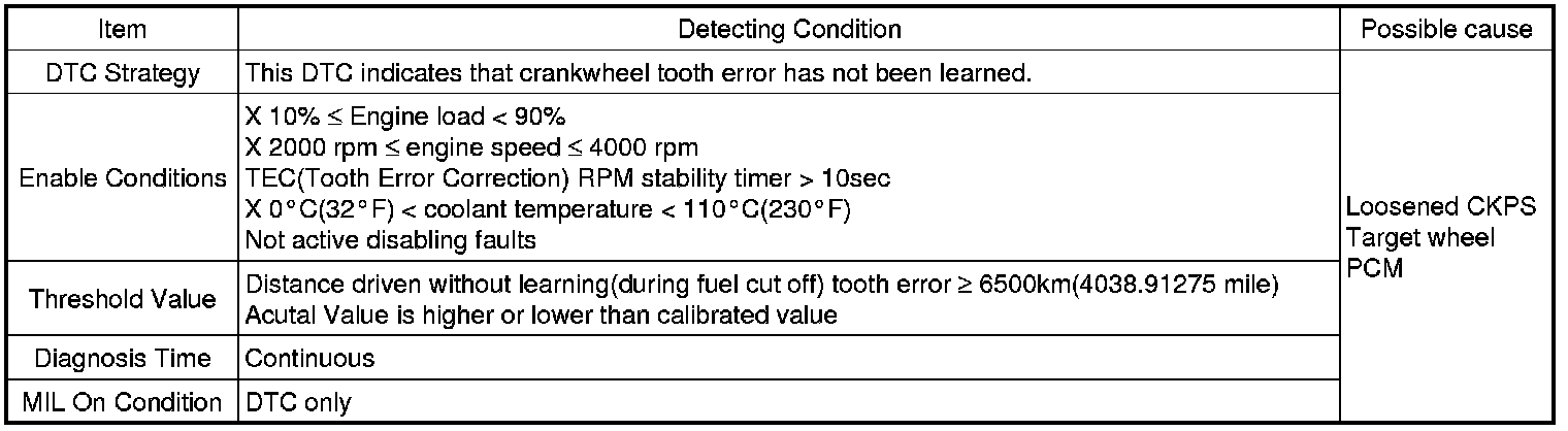 Checking tooth error correction under detecting condition, if the TEC (Tooth Error Correction) is out of Threshold value, PCM sets P0315.