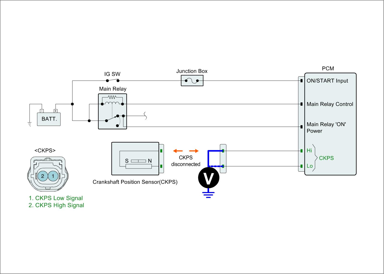 3. Measure voltage between low signal terminal of CKPS harness connector and chassis ground.