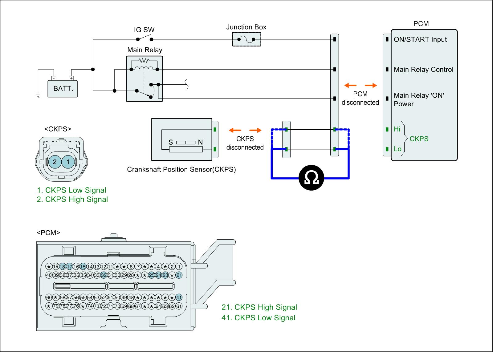 1. IG "OFF" and disconnect CKPS connector and PCM connector.