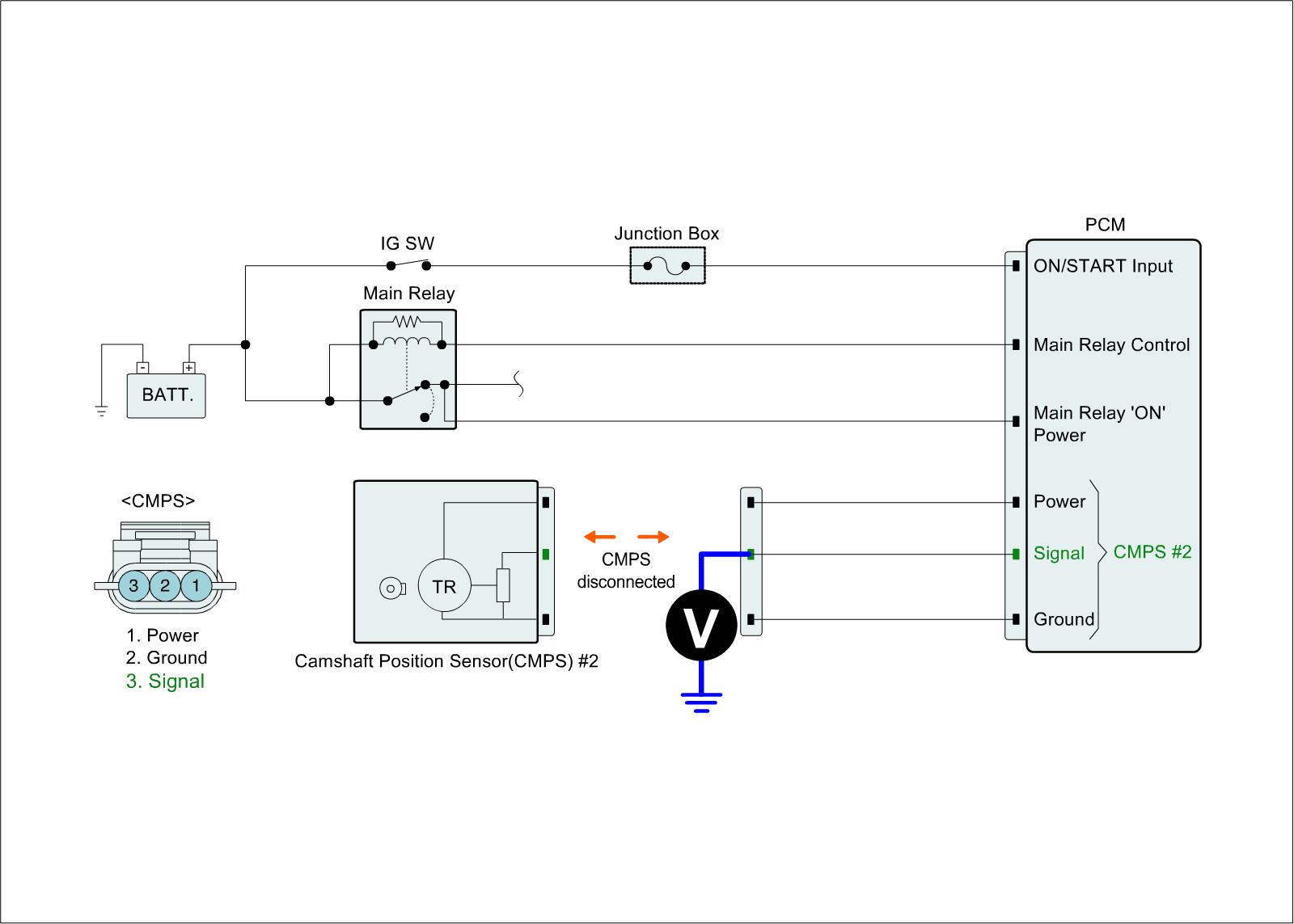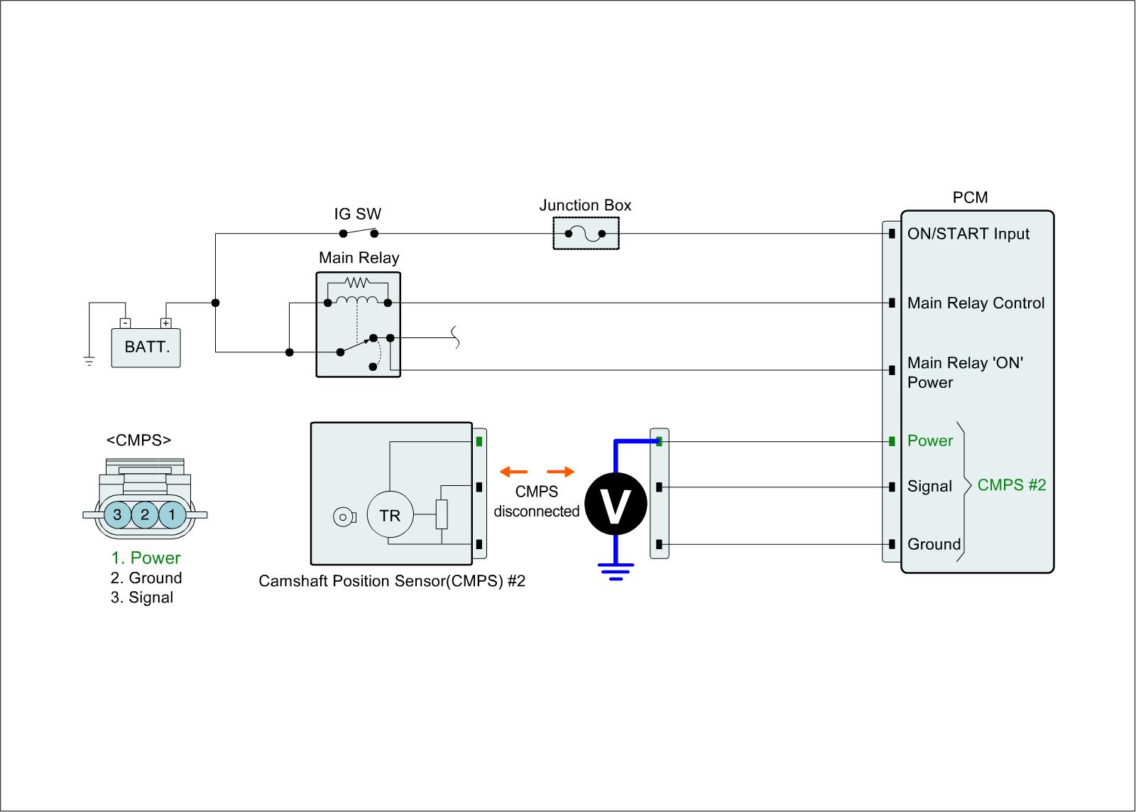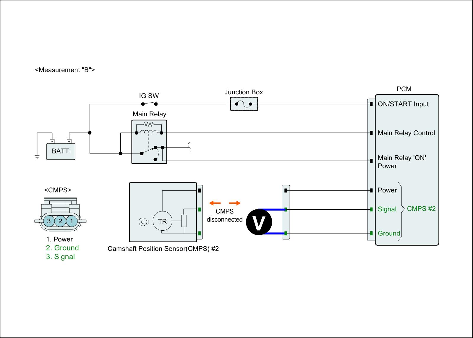 1. IG "OFF" and disconnect CMPS (B2) connector and PCM connector.