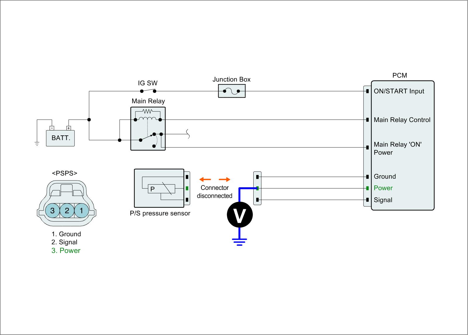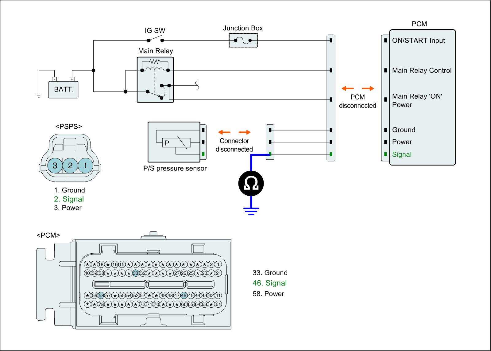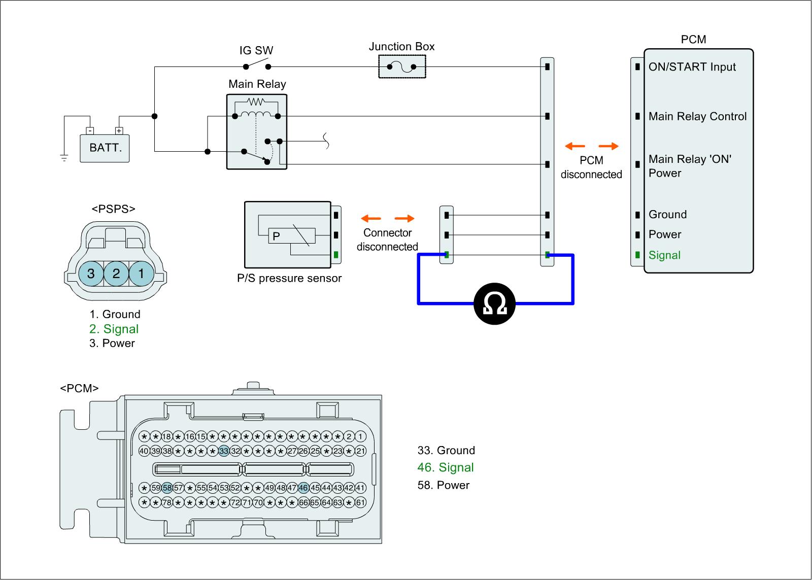 2. Disconnect P/S pressure sensor connector and PCM connector.