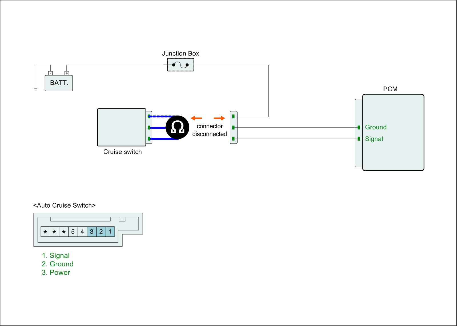 1) Substitute with a known - good auto cruise switch and check for proper operation.