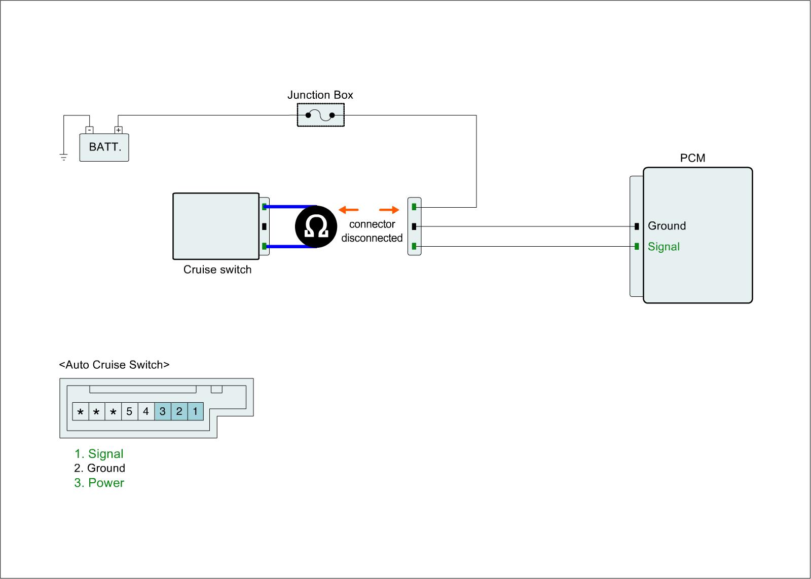 1. IG "OFF" and disconnect Cruise switch connector.