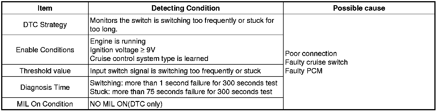 The cruise control system keeps the vehicle running at a fixed speed until a signal canceling this fixed speed is received. When the main switch is turned on with vehicle in the running mode, the battery voltage is applied to the PCM. When a signal from the control switch is input to the PCM while the vehicle is in state, the PCM controls the ETS motor to make a car go at a steady speed you want. Also, while the system is operating, "CRUISE" indicator lamp in the meter assembly lights up.