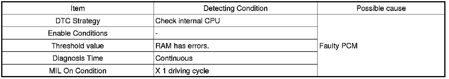 If the RAM in PCM has errors, PCM sets P0604 and MIL (Malfunction Indication Lamp) turns on.