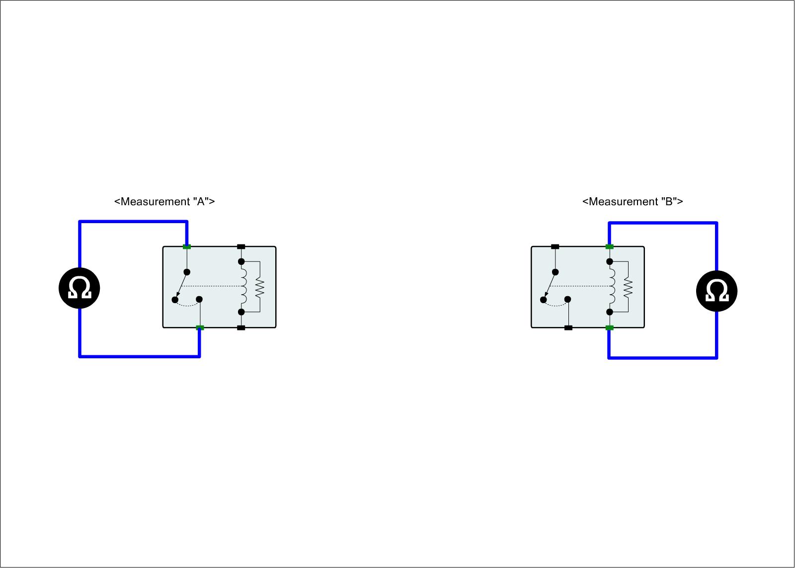 3. Measure resistance between battery power supply and power supply to A/C Compressor terminals of A/C relay. (Measurement "A")