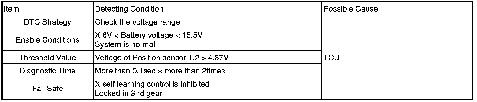 The TCU set this code, When detected higher voltage than standard value from shift lever switch.