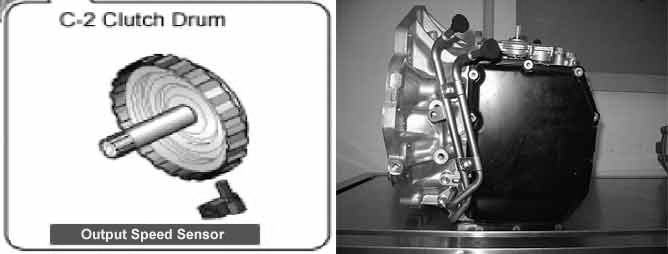 The Output Speed Sensor outputs pulse-signals according to the revolutions of the output shaft of the transmission. The Output Speed Sensor is installed inside transmission. This value, together with the throttle position data, is mainly used to decide the optimum gear position.