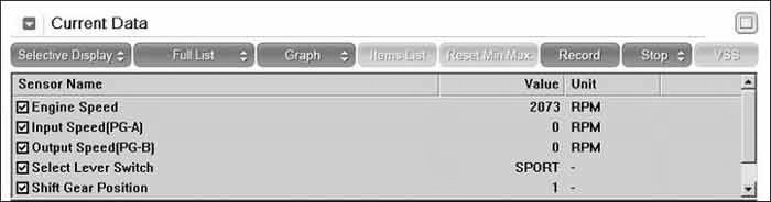 3. Monitor the "ENGINE SPEED, INPUT SPEED SENSOR, OUTPUT SPEED SENSOR, GEAR POSITION" parameter on the scan to