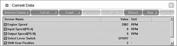 3. Monitor the "ENGINE SPEED, INPUT SPEED SENSOR, OUTPUT SPEED SENSOR, GEAR POSITION" parameter on the scan to