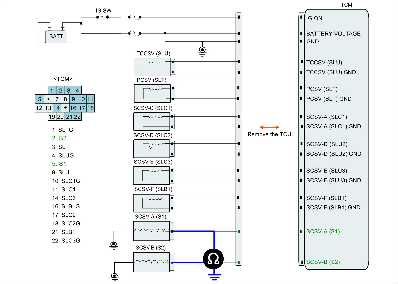 4. Measure the resistance between "S2" solenoid-valve terminal and ground terminal of "S2" solenoid-valve.