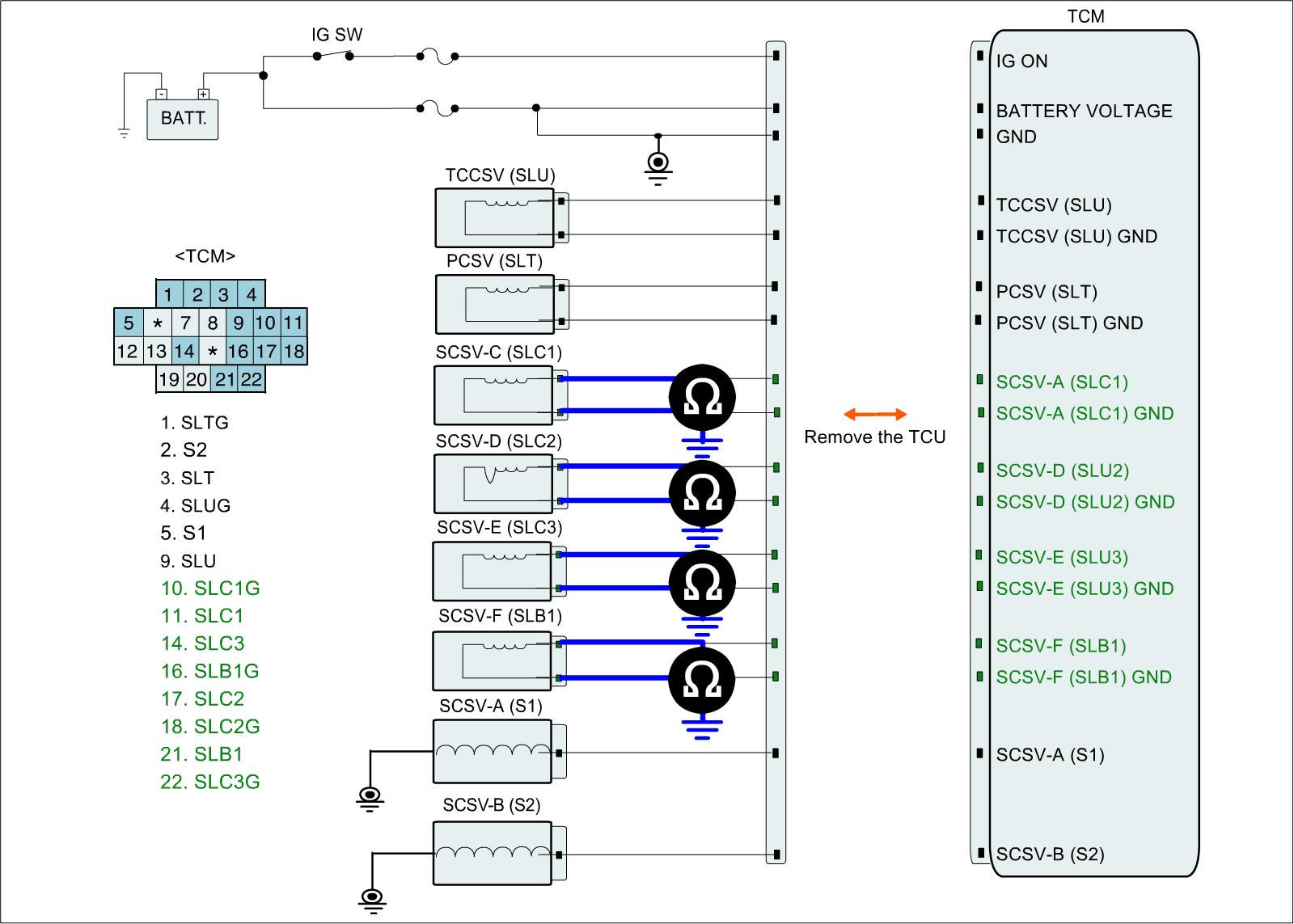 3. Measure the resistance of "SLC1" "SLC2" "SLC3" "SLB1" solenoid-valves.