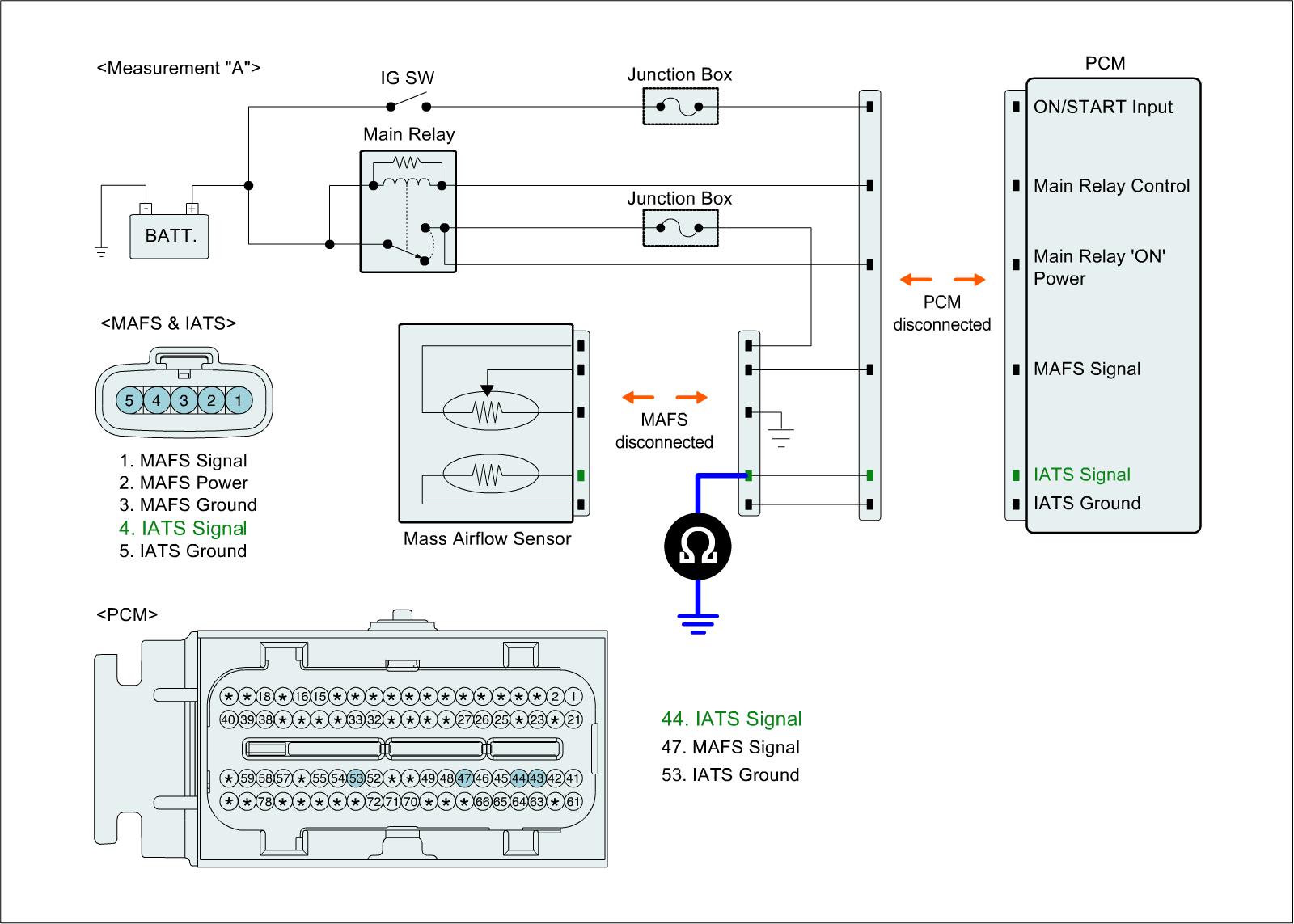 1. IG "OFF" and disconnect IATS connector and PCM connector.