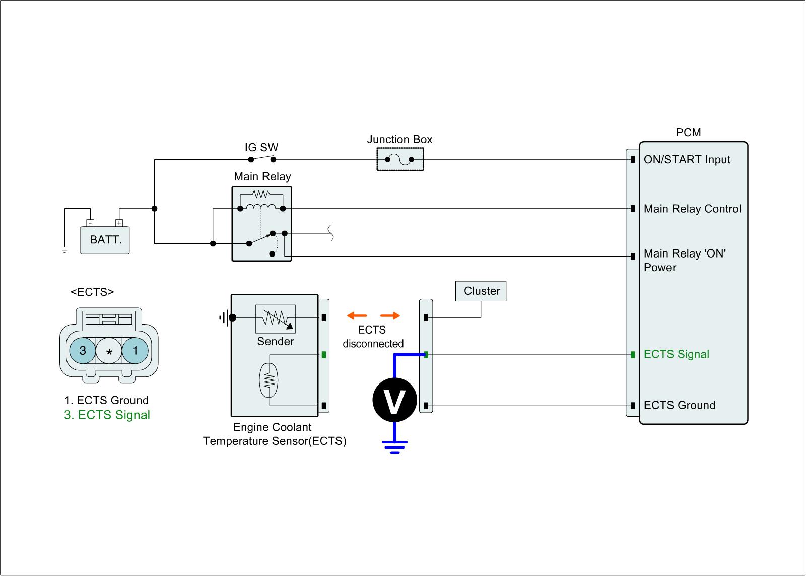 3. Measure voltage between signal terminal of ECTS harness connector and chassis ground.