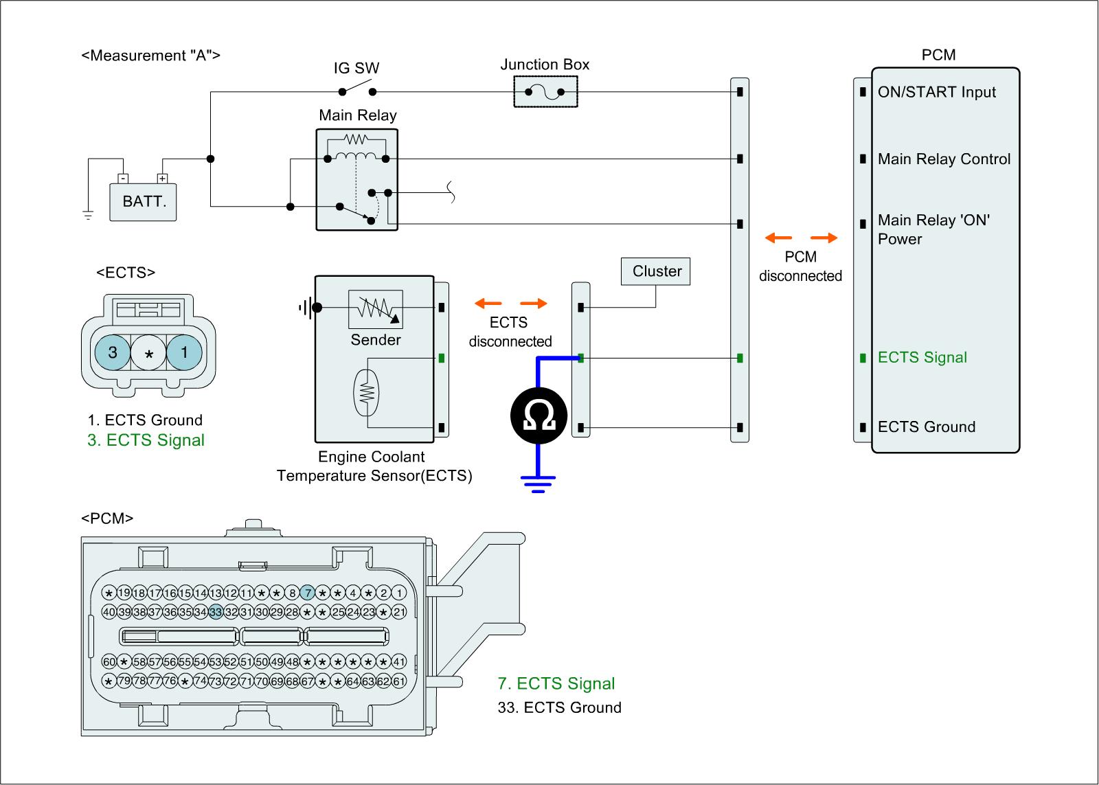 1. IG "OFF" and disconnect ECTS connector and PCM connector.
