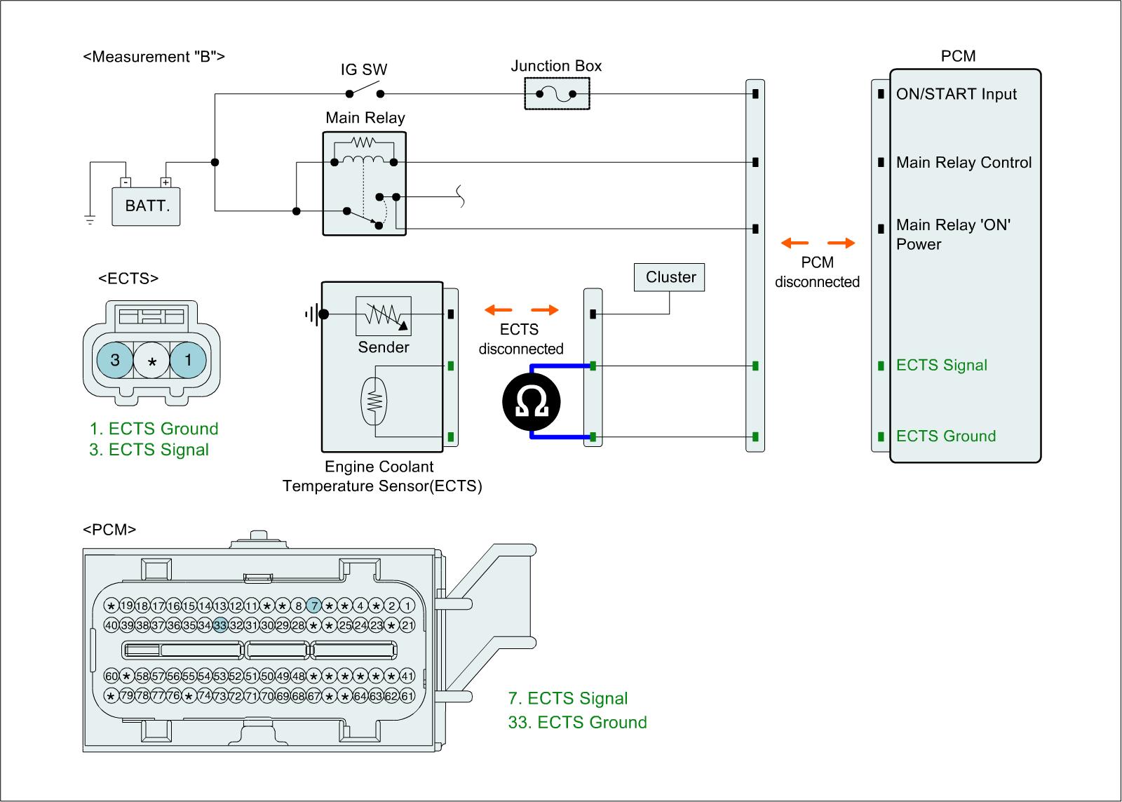 3. Measure resistance between signal and ground terminals of ECTS harness connector. (Measurement "B")