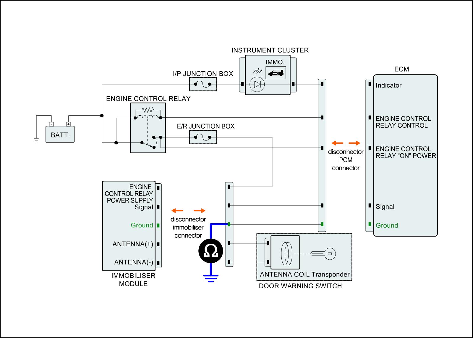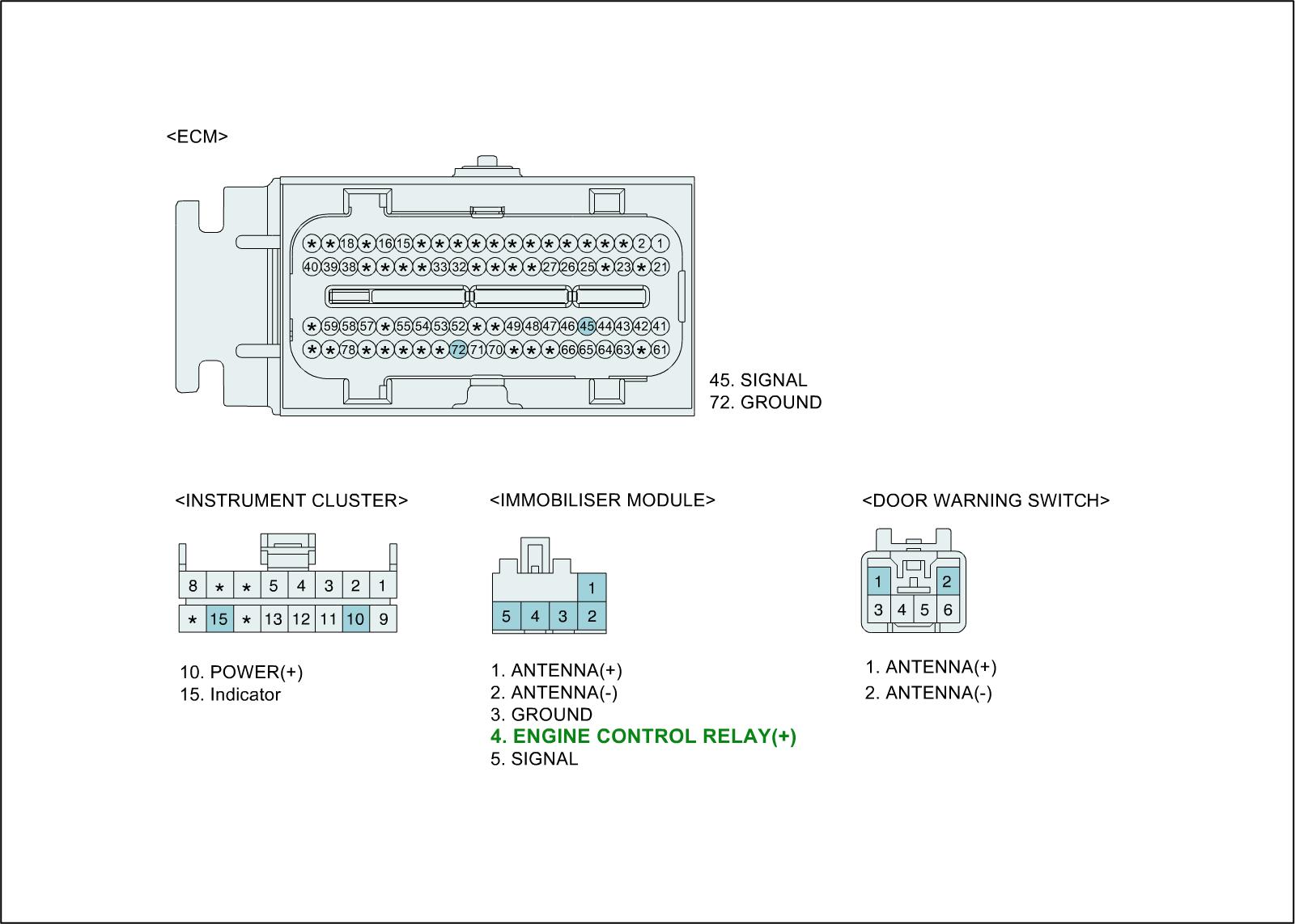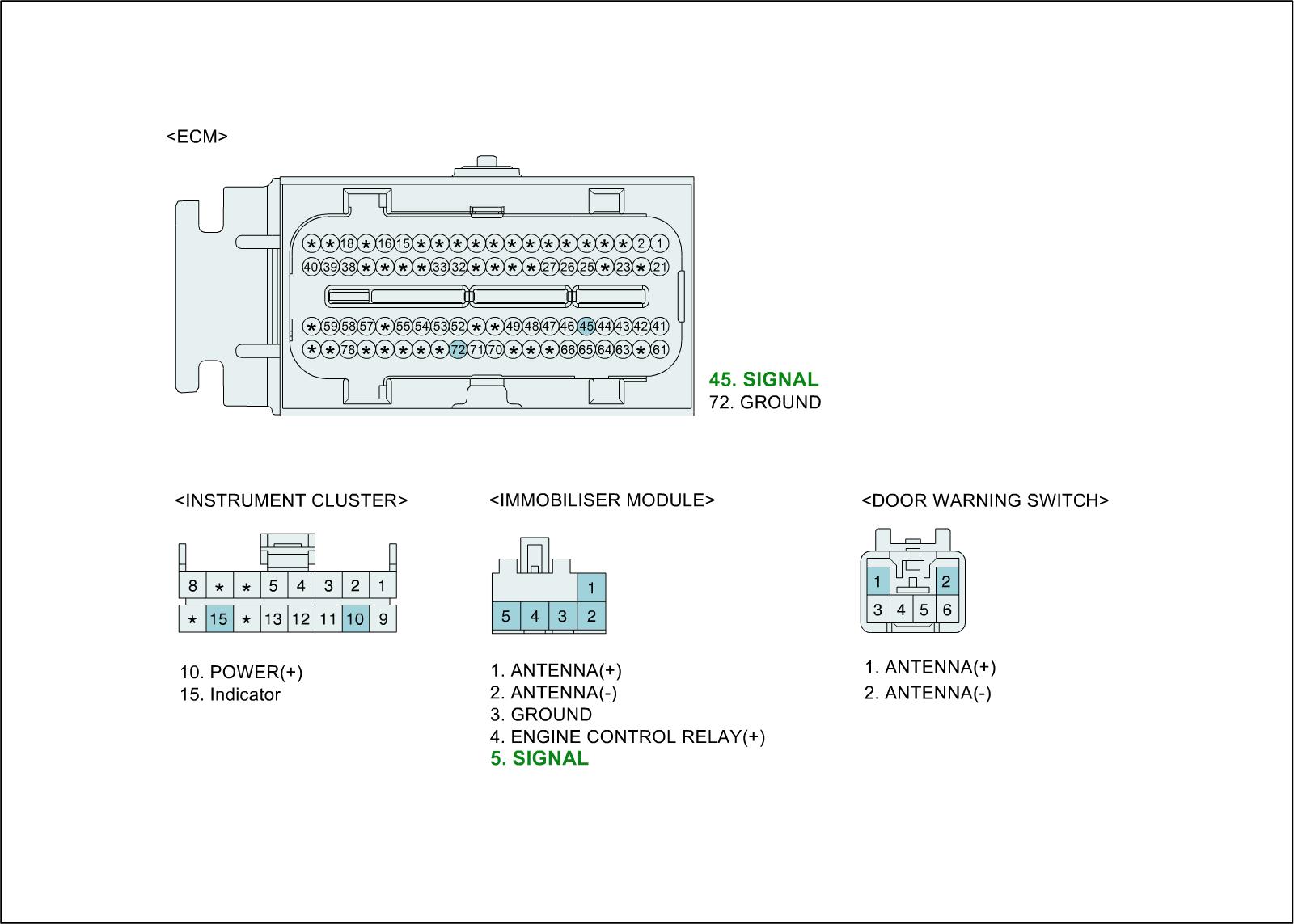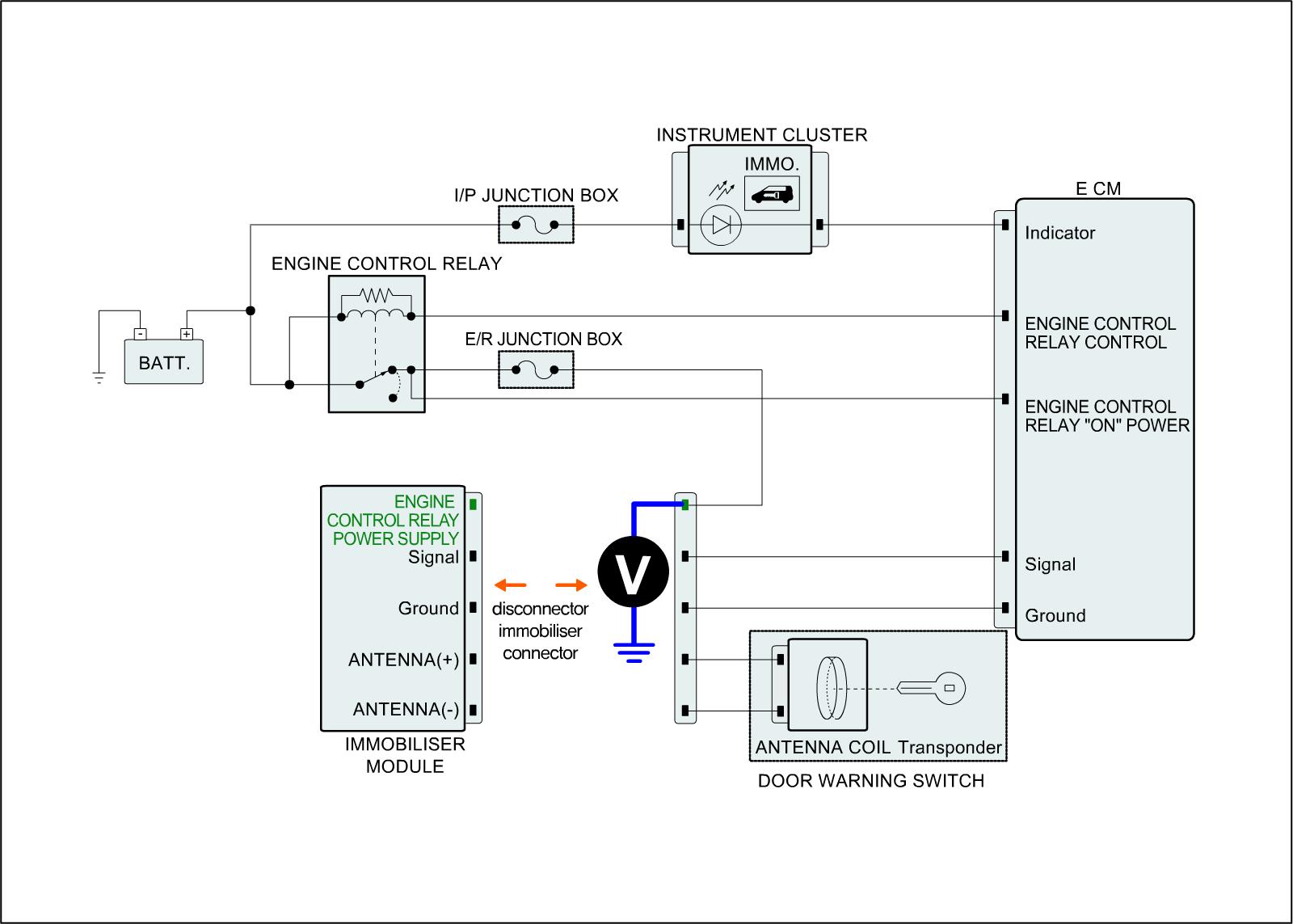 3. Measure voltage between harness side signal terminal of SMARTRA and harness side IMMO signal terminal of ECM.