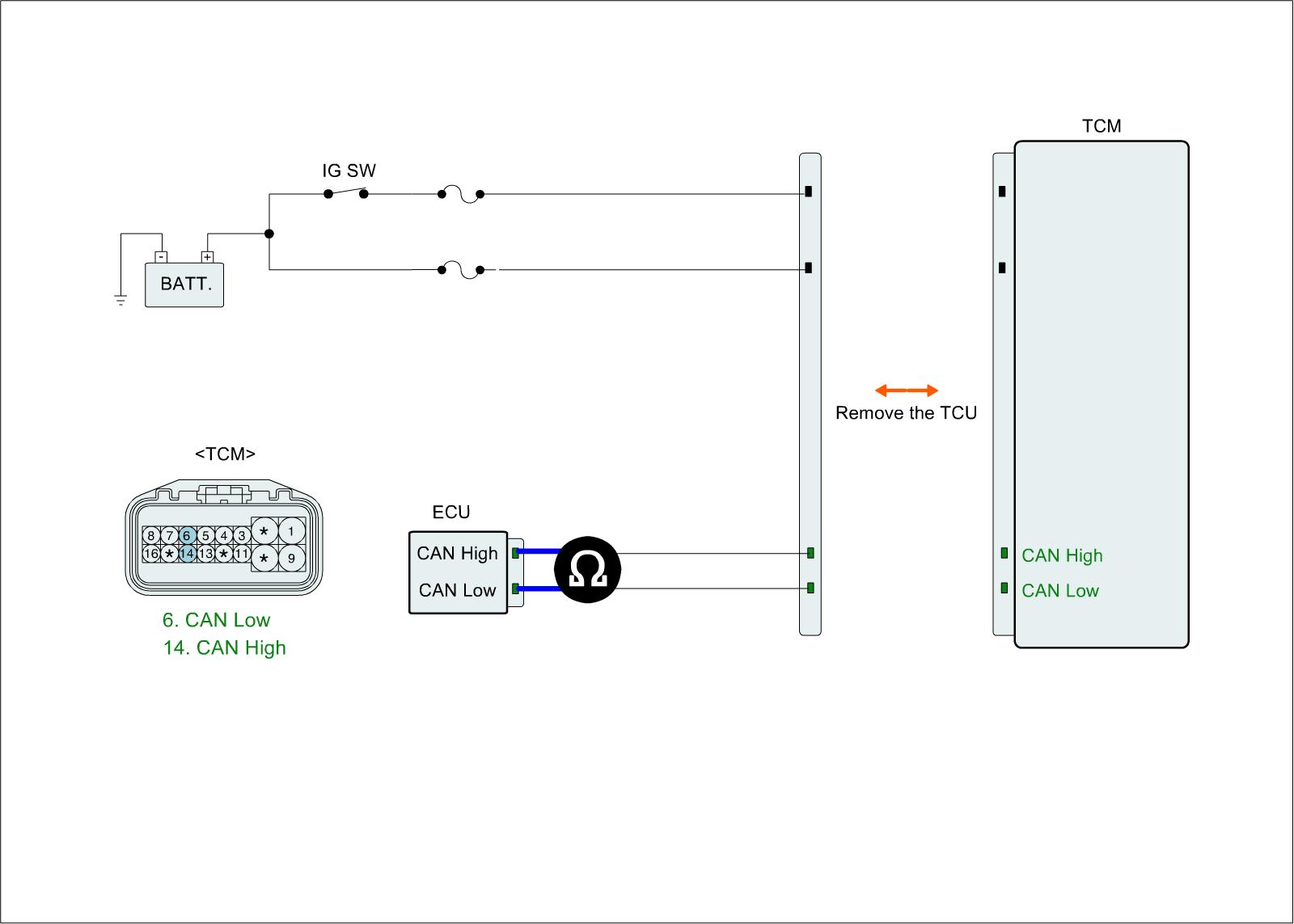 3. Measure Resistence between "CAN HIGH" terminal and "CAN LOW" terminal.
